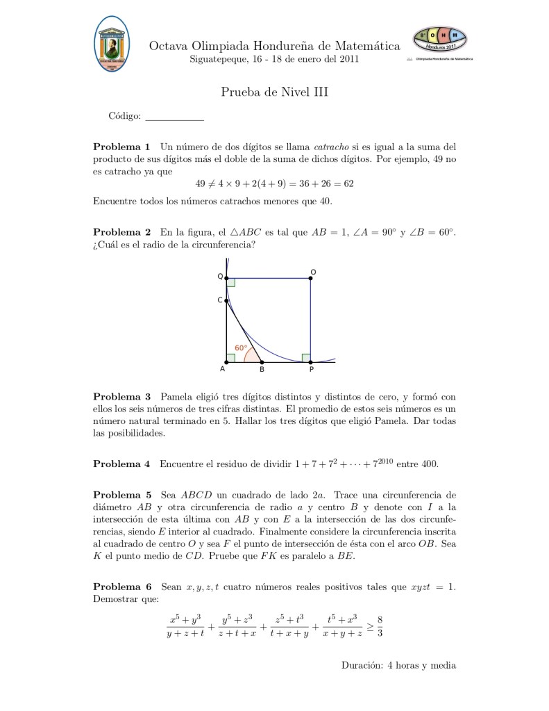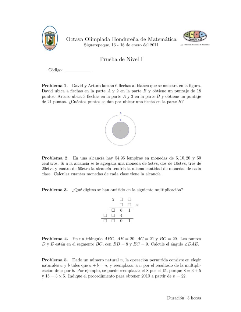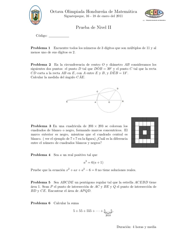 En este página se presenta el examen aplicado en la VIII Olimpiada Hondureña de Matemáticas, se desarrolló en 3 niveles.