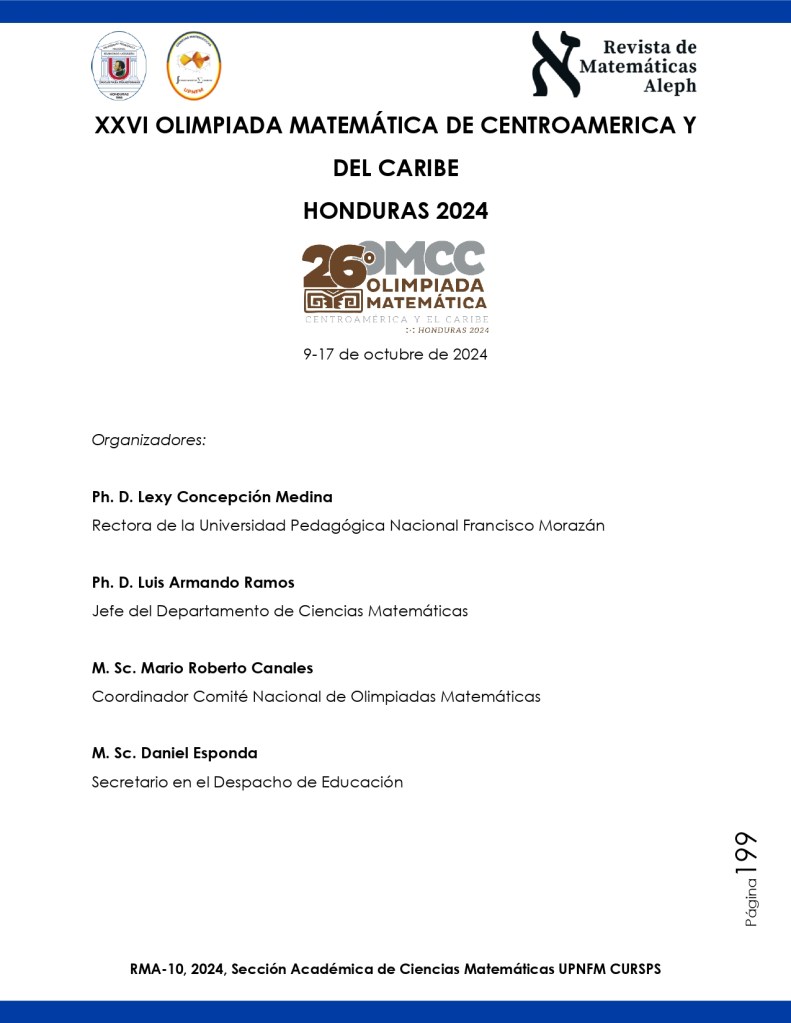 Organizador: Comité Nacional de Olimpiadas Matemáticas de Honduras