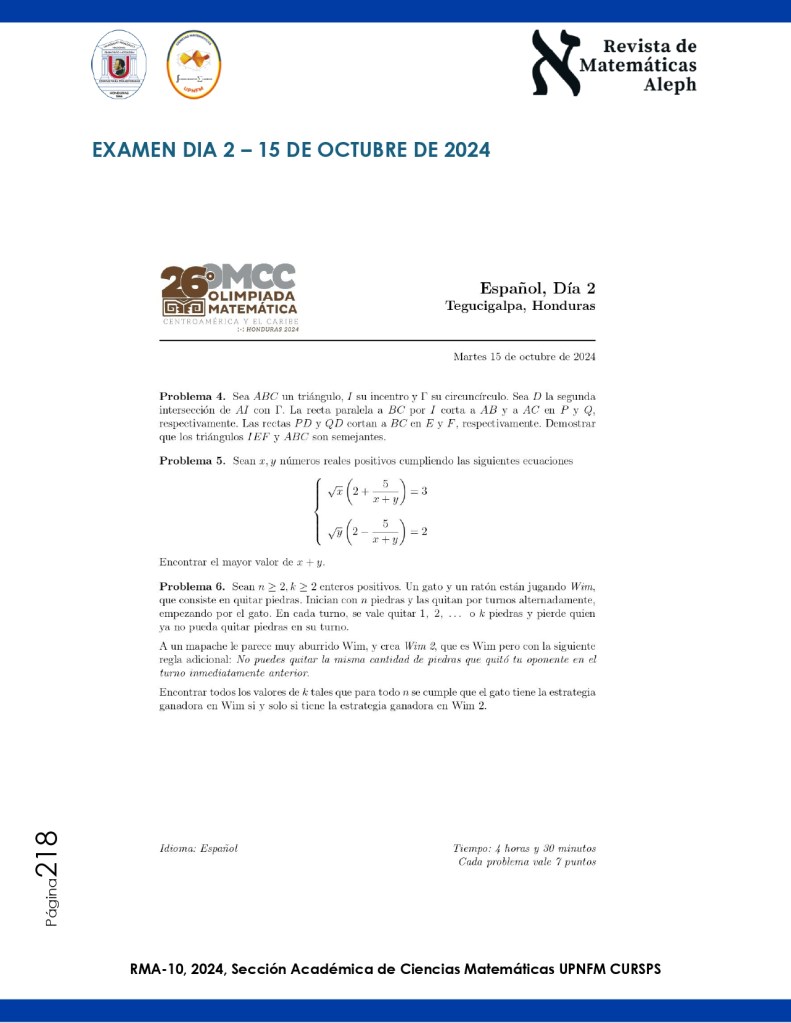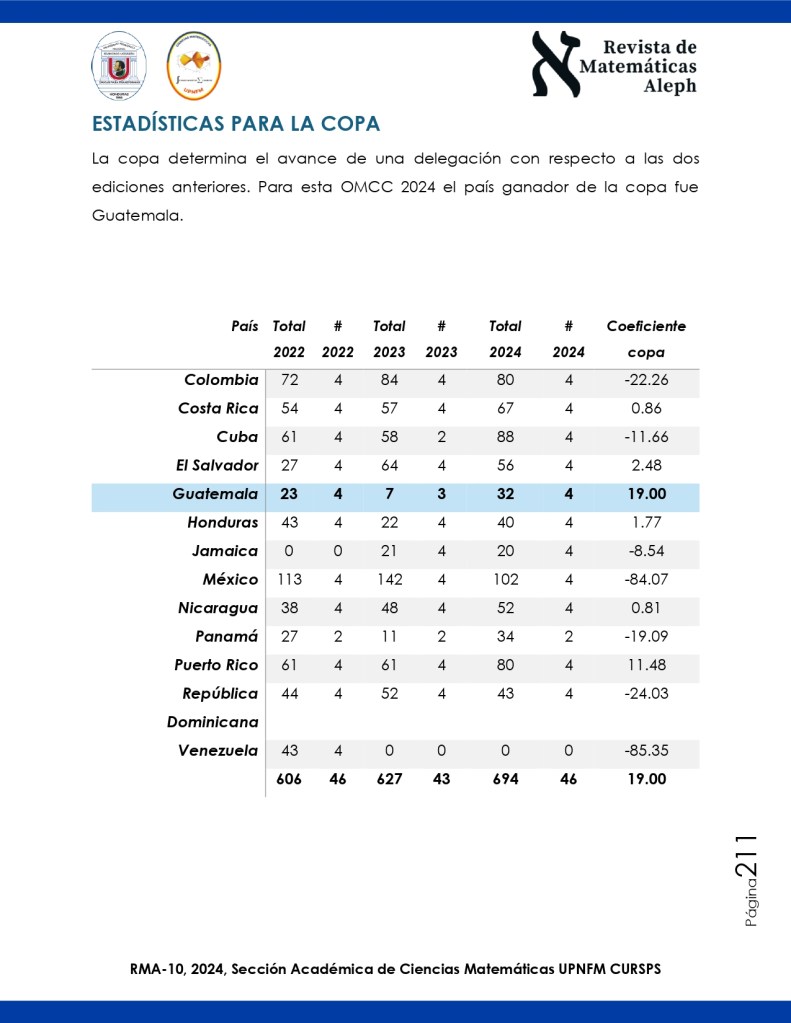 Este documento presenta un breve resumen de la XXVI Olimpiada Matemática de Centroamérica y del Caribe, celebrada en octubre de 2024 en Tegucigalpa, Honduras. En esta competencia internacional participaron jóvenes talentos de doce países, quienes demostraron sus habilidades y conocimientos en matemáticas a través de desafíos de alta exigencia académica. La olimpiada, además de promover la excelencia en el área, fomenta la colaboración y el intercambio cultural entre los países de la región, fortaleciendo el espíritu de amistad y competitividad entre los estudiantes..