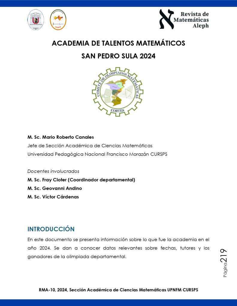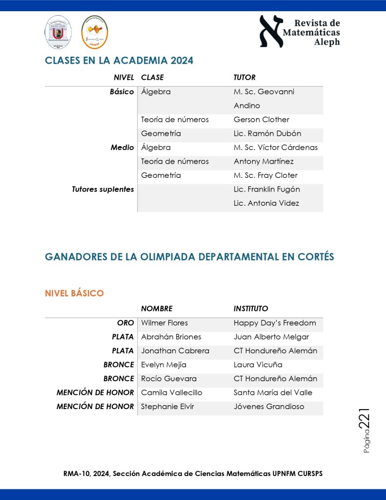En este documento se presenta información sobre lo que fue la academia en el año 2024. Se dan a conocer datos relevantes sobre fechas, tutores y los ganadores de la olimpiada departamental.