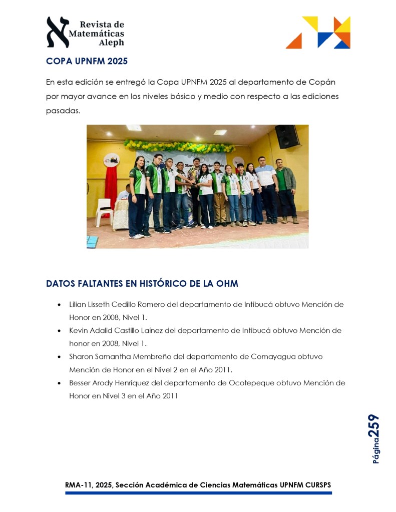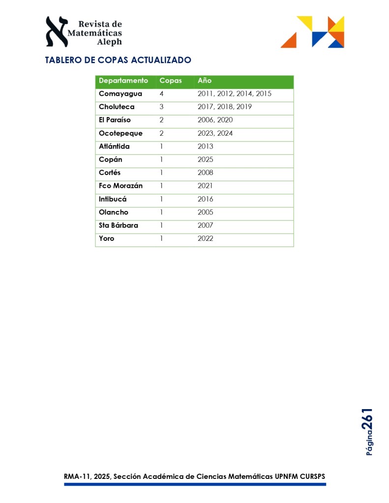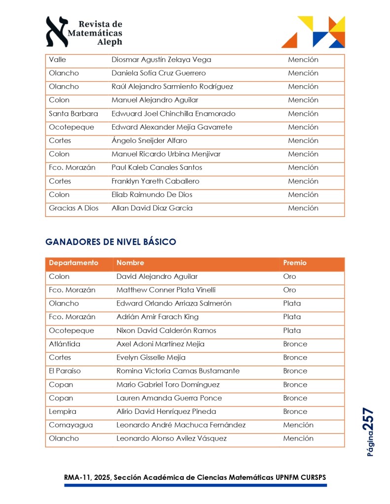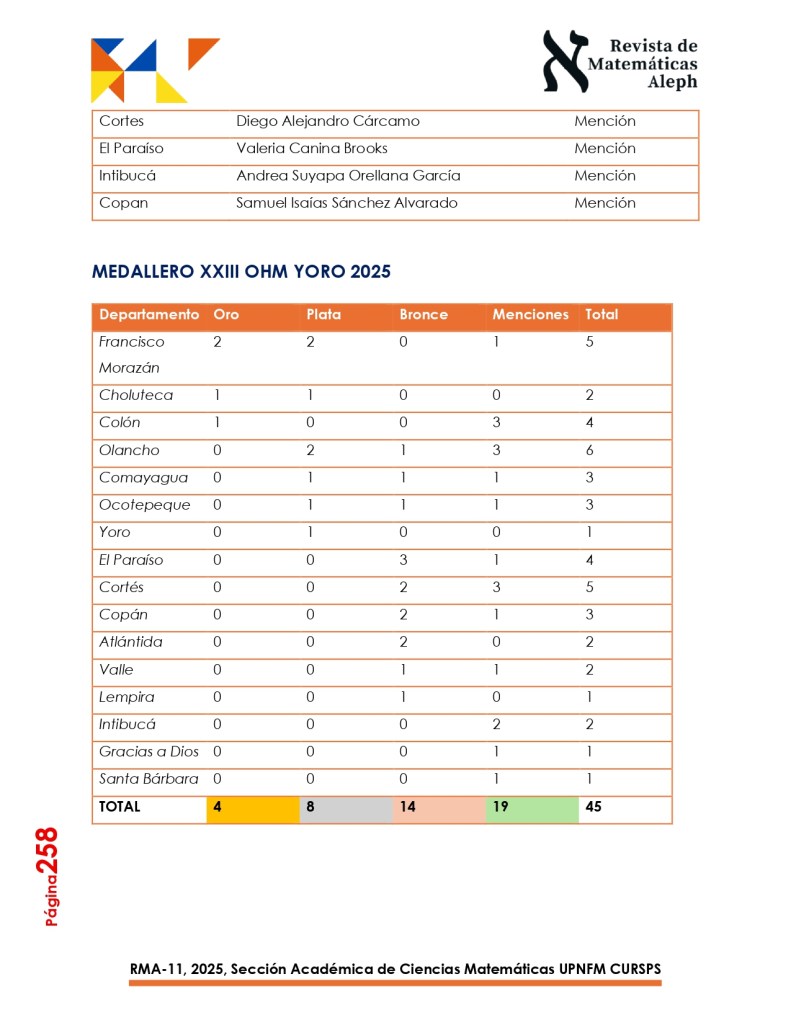 Cárdenas Pérez, V. A. (2025). INFORME OLIMPIADA HONDUREÑA DE MATEMÁTICAS 2025: NIVELES BÁSICO Y MEDIO. Revista de Matemáticas Aleph, 11, 245–261.